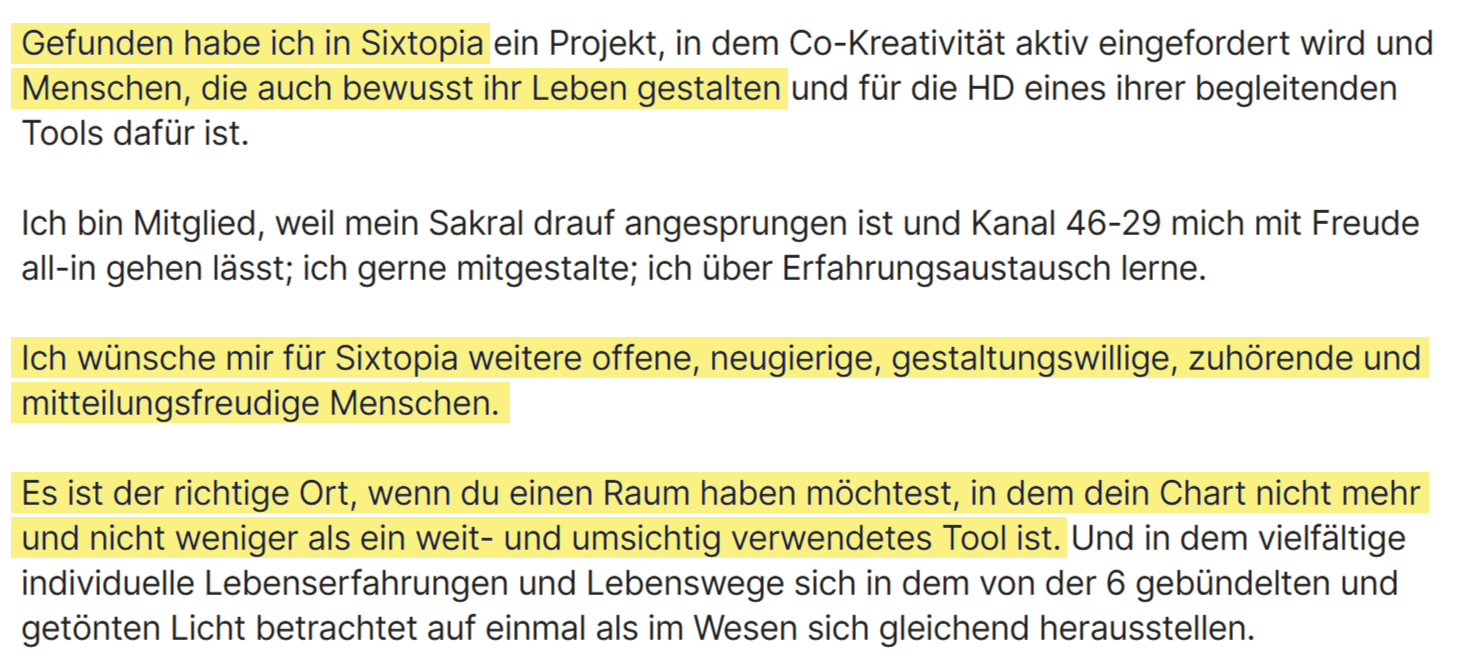 TASTE OF SIXTOPIA ist dein Vorgeschmack auf die Community für Human Design 6er Profile. Tausche dich mit Menschen aus, die wissen wie es ist, nicht ganz in diese Welt zu passen. Die aber genau wie du spüren, dass sie etwas Bedeutungsvolles zu geben haben.