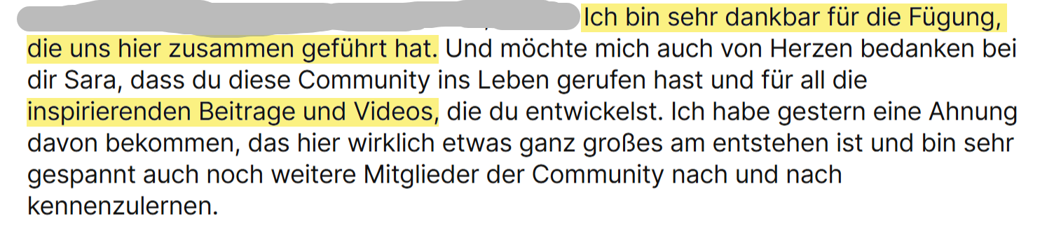 Geschlossener Community-Plattform, Chat-Funktion, Live-Calls zum Austausch, Möglichkeit für Interessensgruppen, Video & Audio Impulsen für dein Wachstum.